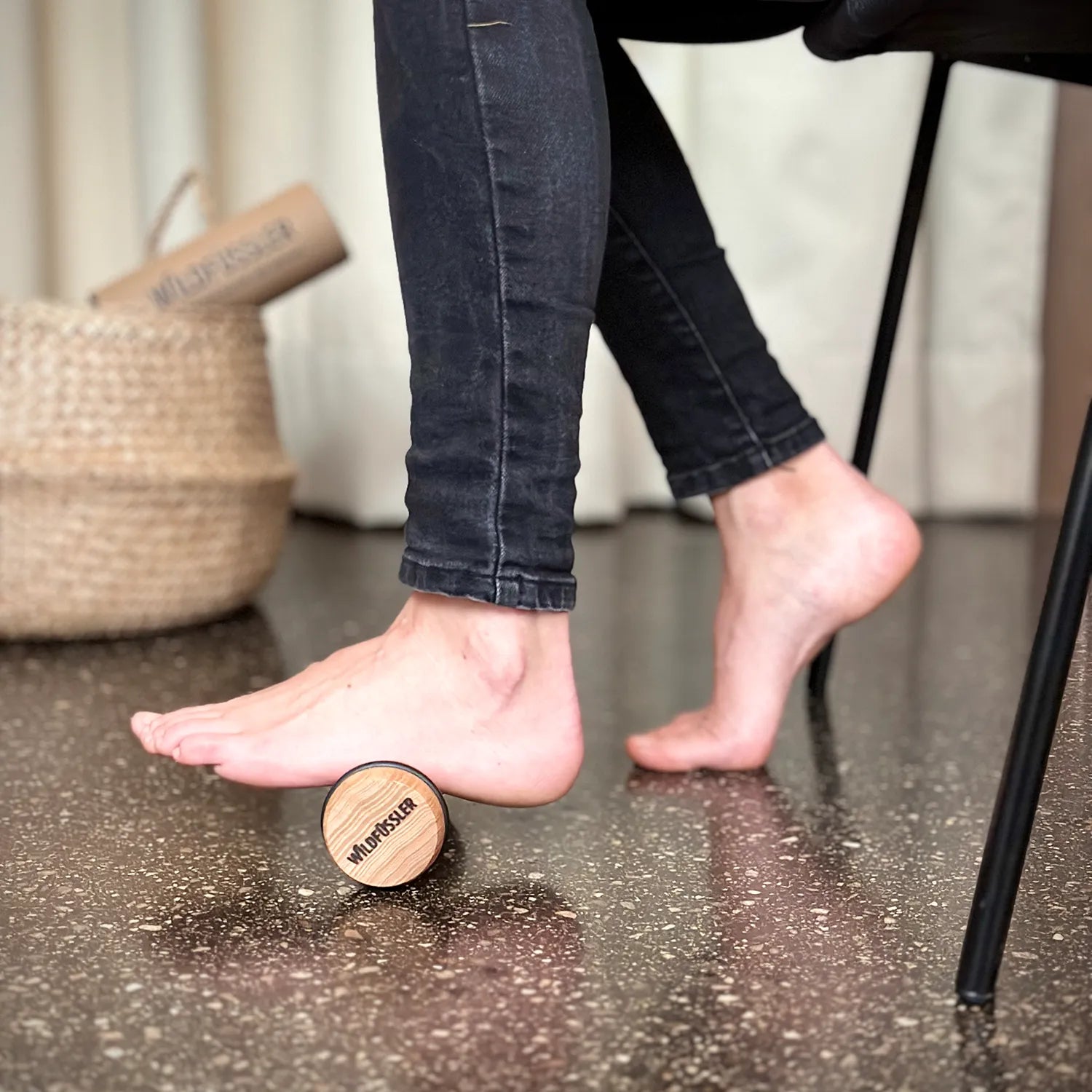 Wildfüssler Flex ist der Neuzugang in unserer Wildfüssler-Familie: Aufbauend auf unserer langjährigen Erfahrung haben wir diese Massagerolle speziell für die Achilles-Sehne entwickelt. Denn auch diese Sehne – die stärkste im menschlichen Körper – will gestärkt und geschmeidig gehalten werden. Die Achilles-Sehne setzt am Fersenbein an und verläuft in Richtung Unterschenkel. Dank der einzigartigen Form des Wildfüssler Flex ist es möglich, das tieferliegende Gewebe entlang der Sehne zu erreichen. Und zwar auch im Bereich des Außenknöchels – ohne den Knöchel zu belasten.